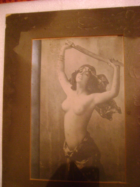 большой портрет девушки с мечем в стиле ню период РИ на паспарту,сам портрет 17 см на 27см