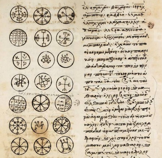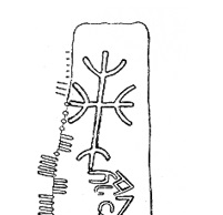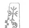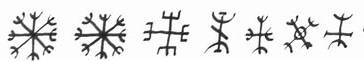 На вашей находке понятно просто изображен известный с древности на европейском пространстве символ, назвать его можно по-разному, лучше как-то нейтральнее, т.к. агисхъяльм - это вообще из исландской магии понятие (известной по книгам 17в), вот, например, те же знаки из греческой (византийской) магической рукописи 15 века "Гигромантия", или ещё аналог с "Llandeilo Stone", это вообще островные кельты 5-6вв, Уэльс. Так что этот знак где только не встречался.