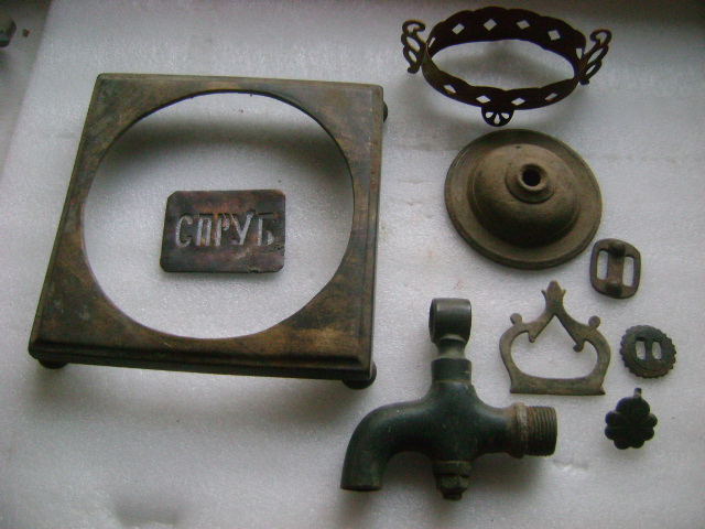 лот копаной латуни: самоварные детали,конина,основание подсвечника,основа от икорницы( была хрустальная вставка)+ пряга