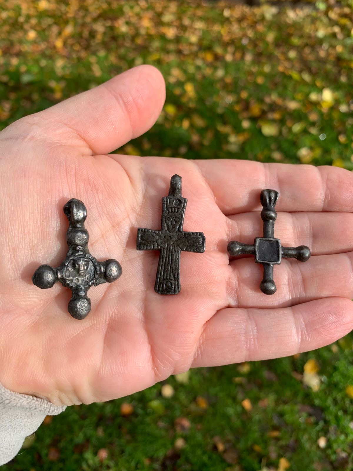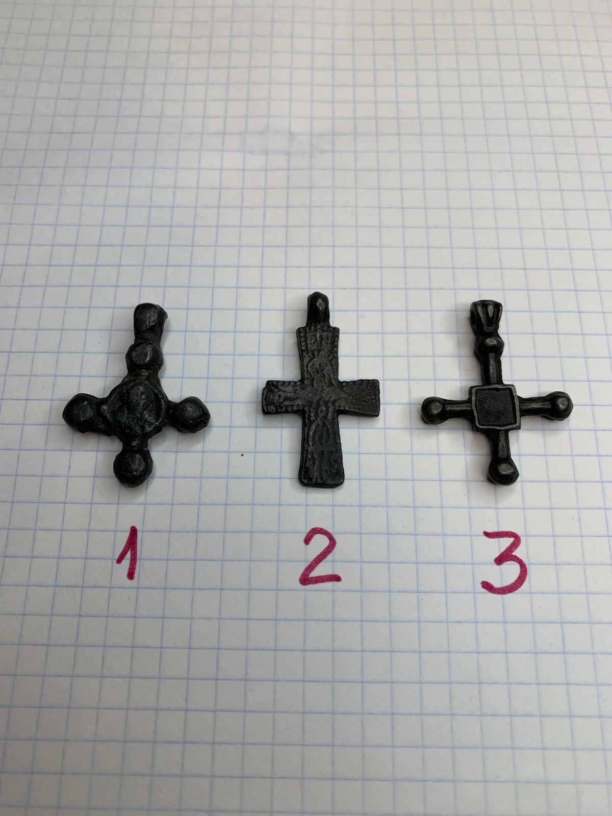 QUOTE(Гертруда @ Oct 12 2025, 20:24) Обычные бронзовые предметы и выглядят обычно, как, например, этот энколпион. Кресты изготовлены из какого-то сплава белого цвета, поэтому и выглядят так необычно. Это их природный цвет, ни химической, ни термической обработке не подвергались. В реальности они выглядят точно также, как на фото. Сделайте фото на тёмном фоне: фотоаппарат выставляет более короткую выдержку по светлому фону, а кресты получаются затемнённые. |