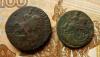 Попалась вот такая копейка Екатерины II. Буду благодарен за определение года (мне видится 1763), и примерную оценку в таком сохране. Вложенные эскизы изображений ![]() ![]() -------------------- Куплю 50 копеек 1973, 1989, 1990 г.