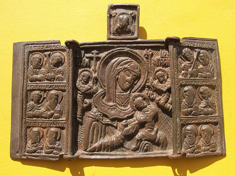 13. Складень Богоматерь Страстная. Не частый. Размер в раскрытом виде 95х68 мм