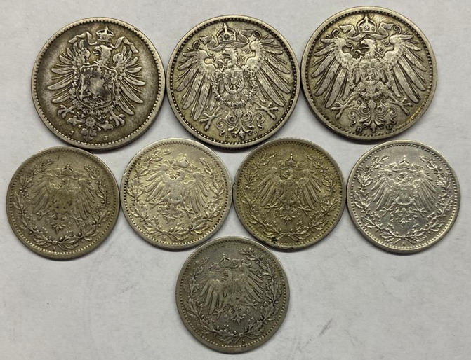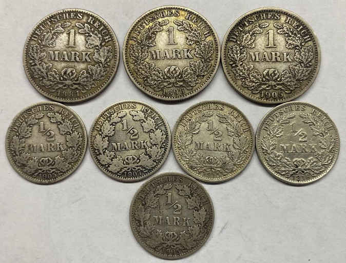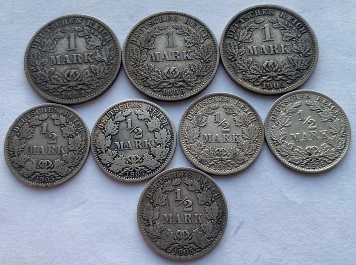 Предложу лот-Германская империя (1871-1922).1 Рейх марк 1881,1896,1905,1/2 Рейх марк 1905г- 1916г. Серебро. Комплекс. Состояние отличное. Любые фото по просьбе вышлю в личку.