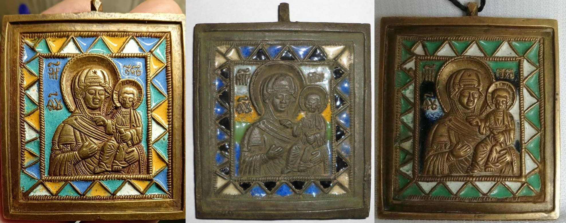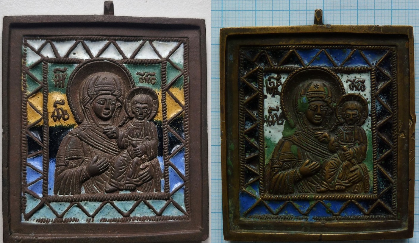 Раскладка попроще, чем у моей, но цветовая палитра фактически идентичная. Если бы не скол эмали слева от Богородицы - тоже назвали бы шадринским фуфлом ? ![]() Ранее уже приводил пример одной из своих московских икон (двухвершковой), у которой тоже нет видимых дефектов на эмалях. У её площадь эмалированной поверхности раза в 4 больше. Тоже в шадринское фуфло определим ? |
