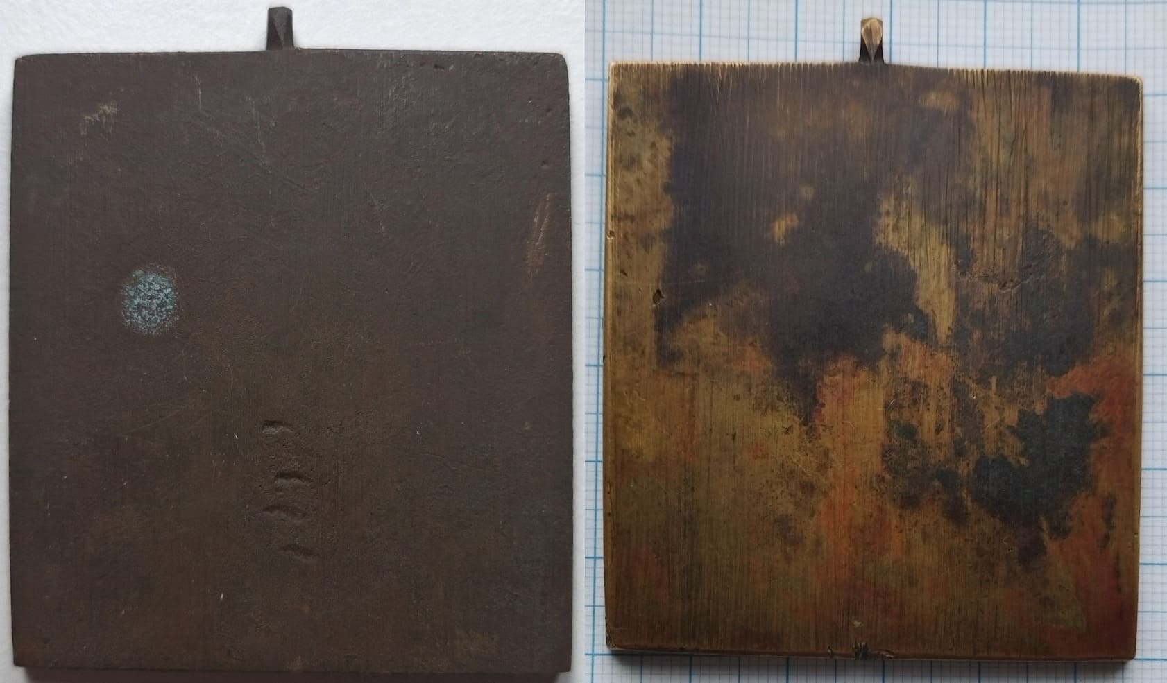То что моя икона подлинная, видно даже по обороту. Её чем то пытались чистить/мыть, но не доделали. В левой верхней части видны не удаленных окислов, а в нижней части иконы горизонтальные следы от какого-то мелкого абразива. Если бы это был новодел, его наоборот бы попытались максимально зафактурить. Завтра утром приеду домой и покажу на фото, что я имел ввиду. Добавлю, что до чистки оборот скорее всего выглядел как на иконе уважаемого Ягморта. Сообщение отредактировано МихаилБорисович: Oct 24 2025, 17:14 |