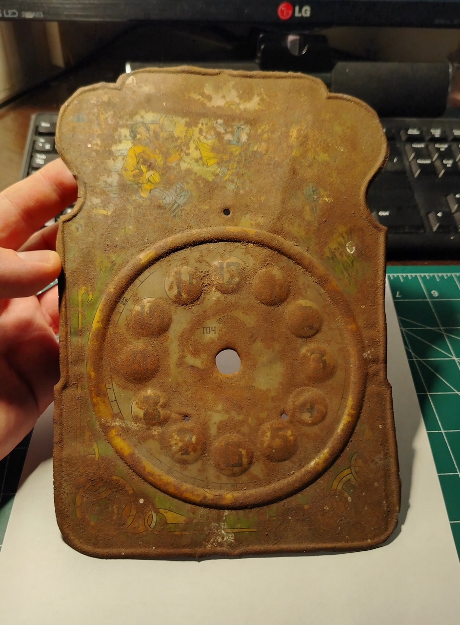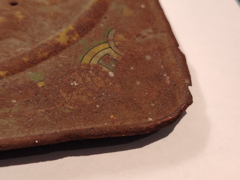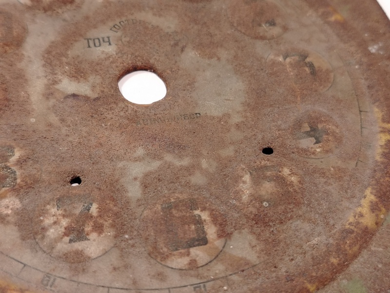 Итак, вводные. От скуки решил чего-нибудь зареставрировть. Недавно копался в старинных маятниковых часах (это не оружие, но очень просили - сделал), тема понравилась и решил подобрать себе в работу часы-ходики ранних Советов, годов 1920-1930-х. А как говорила троица у Гайдая: Вопрос для нас новый, народ хочет разобраться! Решил прежде чем делать что-то начисто, набить руку на хламе. С механизмами вопросов нет. Но вот на днях на интернет-аукционе купил жестяной циферблат в печальном сохране. На нём есть всё, что можно встретить: и трещины, и заломы-вмятины, и ржавчина, и выгоревшая краска и т.д. и т.п. Короче, идеально для получения опыта. Но случился попадос... Когда покупал, не присматривался к рисунку циферблата. А дело в том, что по обычаю того времени в верхней части циферблата ("шапке") наносили какой-то рисунок-украшение. Например, цветы. Либо растительный орнамент или деревенскую сценку, типа покос сена... В купленном циферблате эта "шапка" покрыта тонкой ржой процентов на 80 точно. Когда получил покупку, взял в руки и смог рассмотреть тщательно, понял, что рисунок на циферблате уникален - я нигде не нашёл его описания ни словесного ни фото. При этом, изучив видимые кусочки рисунка, уверен на 99,9999% - это заводское исполнение, а не чья-то самодеятельность. А пускать на опыты, т.е. фактически уничтожать, уникальный предмет - это противоречит моим принципам. Это уже История. Короче, на купленном циферблате опыты уже ставить нельзя. Его самого надо реставрировать. А из-за уникальности рисунка, у меня нет ни одного шанса на ошибку - мне негде взять образец рисунка, чтобы скопировать и восстановить утраченные фрагменты. Мне надо сразу по максимуму вытягивать предмет - ржавчину надо удалить максимально щадящим для краски способом. Вот тут-то я вспомнил недавнюю тему в этом разделе. Несколько недель назад всплыла тема с определением и оценкой каски, кажется копанной. Это был колпак, полностью покрытый ровным слоем коричневой ржавчины. И владелец протравил его щавелевкой и выложил фотки результатов работы. К моему удивлению, вышла не только основная краска защитного цвета, но что реально поразило, декаль, о существовании которой по тем фото даже не догадывался. Впечатлило и я решил протравить часовой циферблат щавелевой кислотой. Но я не пользовался ею уже много лет, обычно работаю другими способами. Пошарил по сусекам - никаких записей, что и как я тогда делал, не оставил. Поэтому прошу у коллектива помощи как лучше всего и, главное, бережнее для предмета, щавелевку применять? Сколько кислоты, сколько воды, температура, на какое время, надо ли помешивать или периодически чистить предмет... Ну вот все ньюансы. Мне всё-таки надо с первого раза попасть в десяточку, чтоб не угробить уникальный рисунок. Очень рассчитываю на помощь! Заранее всем спасибо! |