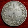 Описание лота: 3/4 рубля 5-ть злотых, довольно интересная видовая монета, последний год выпуска, гурт хороший, крепкий , есть царапинки.