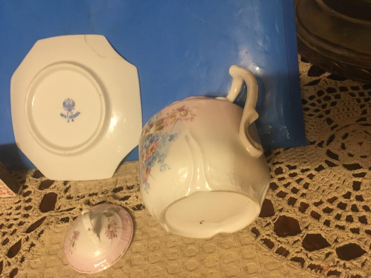 Левая:Кассовая тарелка «Коньяк Шустова», фарфор,реклама. Фабрика М. С. Кузнецова.На мешке стоит за 6700 рэ.