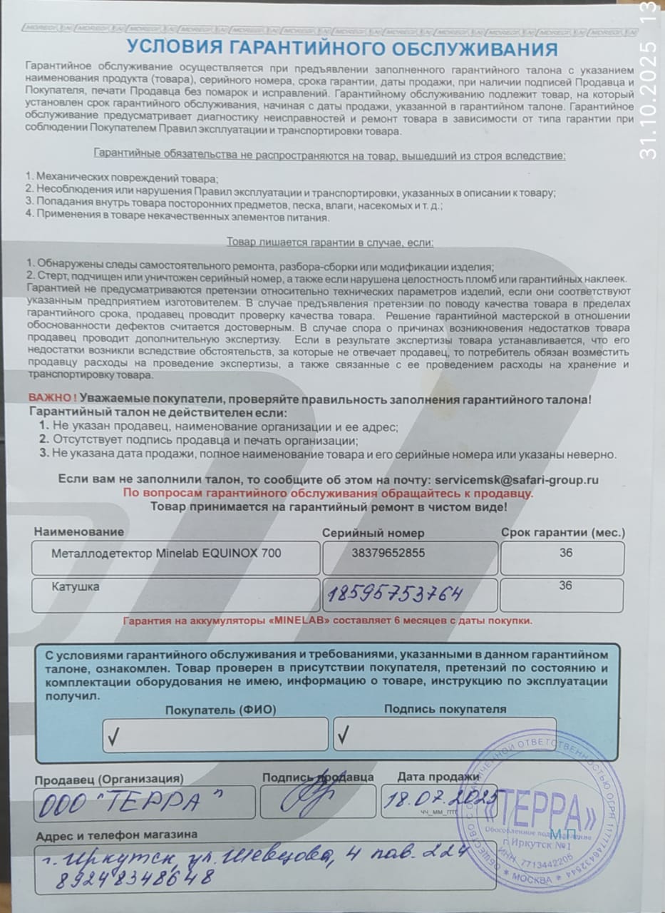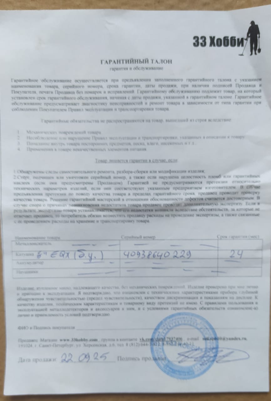 Прибор покупал в июле 2025г.(гарантия до 07.28г.), катушку б/у 6" - в сентябре 2025г (гарантия 2 года) Прибор безпроблемный, в воде не использовался. Наушники переделаны в беспроводной блок. Находится в Иркутской обл. Цена 85 т.р. плюс пересыл. При реальном интересе, скину доп. фото. Сообщение отредактировано mosq: Nov 2 2025, 11:02 |