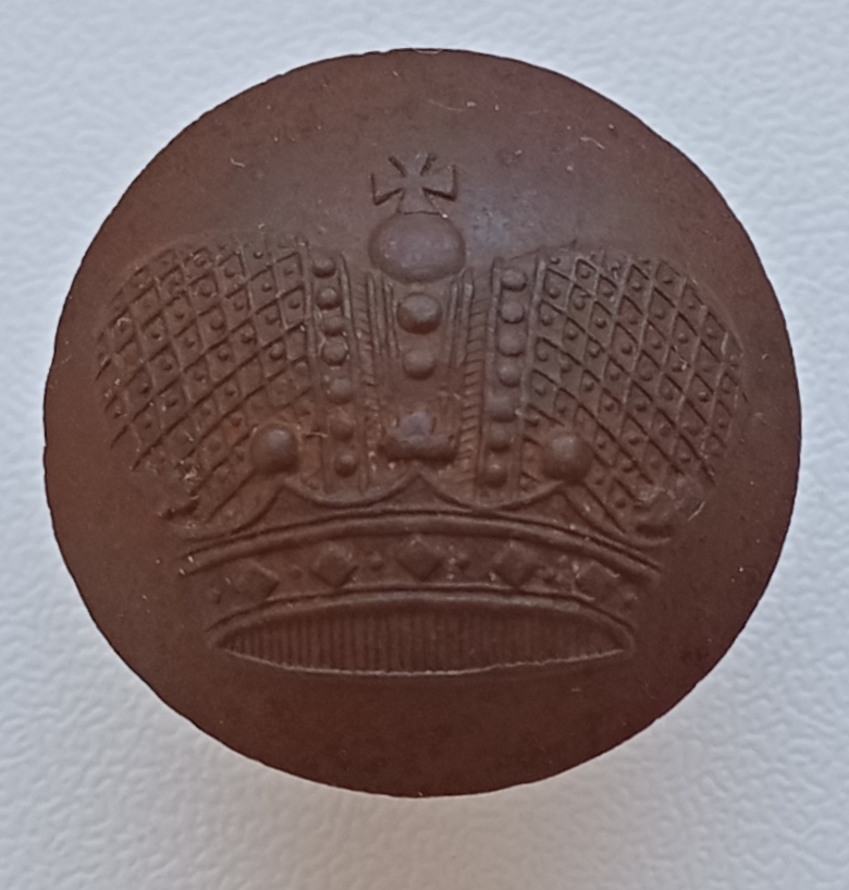 Нижний чин шефских полков, образца 1862-1904 г. С таким ухом изготавливали до 1877 г. В 1862 году, когда более, чем в два раза увеличилось количество армейских полков произошли значительные изменения в «пуговичном» оформлении обмундирования. На пуговицах военного ведомства, кроме гвардии и генералитета, прекратили изображать номера и арматуры. В полках, где «шефами» являлись члены Императорской фамилии (Император, императрица, а с 1869 года - Цесаревич и Цесаревна) на мундирных пуговицах чеканилась императорская корона. Вложенные эскизы изображений |