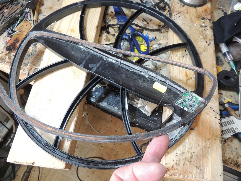 Вчера прислали COILTEK маленькую, глюкает при включении прибора. Другие катушки от Эквинокса в той же квартире, лежат молча. После проверки кабеля, сопротивлений на протечку катушки, все в норме. Предполагаю, что сделать ее получится только всю разобрав, заэкранировать по новой обмотки, и собрать. Если получится разобрать и сохранить корпус, то можно собрать в этом корпусе. Если не получится, то в новом корпусе. Если треснет обмотка, то можно собрать в этом корпусе другую катушку. Но это не ремонт для клиента, а чисто возня в свободное время. Поэтому предложил эту катушку выкупить, а далее, как будет время повозиться. Поковыряться.