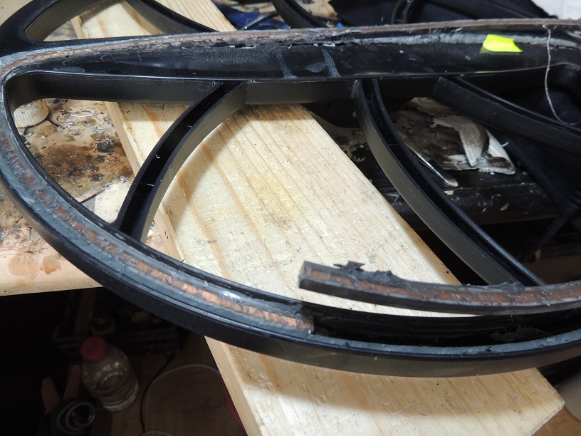 Катушка Коилтек NOX 15. Оказалась с отсутствием приемной обмотки. Катушка на вид новая, и подумалось, что где то плохо припаяно. Была такая надежда. Но пришлось вытаскивать всю обмотку. И в процессе этого обрыв обнаружился. В корпусе катушки трещины нет. Но от сильного удара, обмотка треснула, все проводки срезаны как ножом. Хорошо что приемная снизу, можно вытащить и вставить другую.