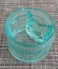 Доброго дня, прошу помощи в определении и оценки данного предмета. Высота с крышкой 5,9 см., ширина по дну 7,1 см. Без сколов и трещин, в стекле много воздушных пузырьков.