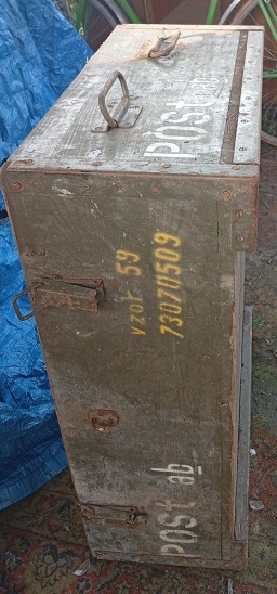Доброго времени суток, коллеги! Друг разбирая барахло в купленном доме нашел такой ящик. Сбросил мне фотки. Размеры примерные метр на 60 на 30. Подскажите, что за ящик такой и имеет ли отношение к военке. Ну и если есть интерес, то ценовую палитику. Заранее спасибо за интерес к теме.