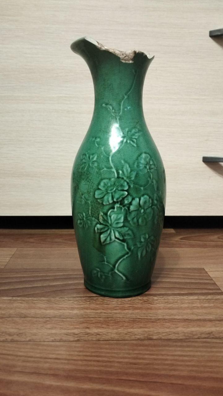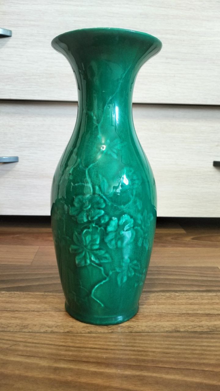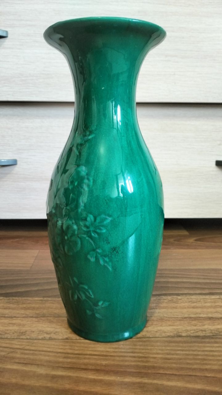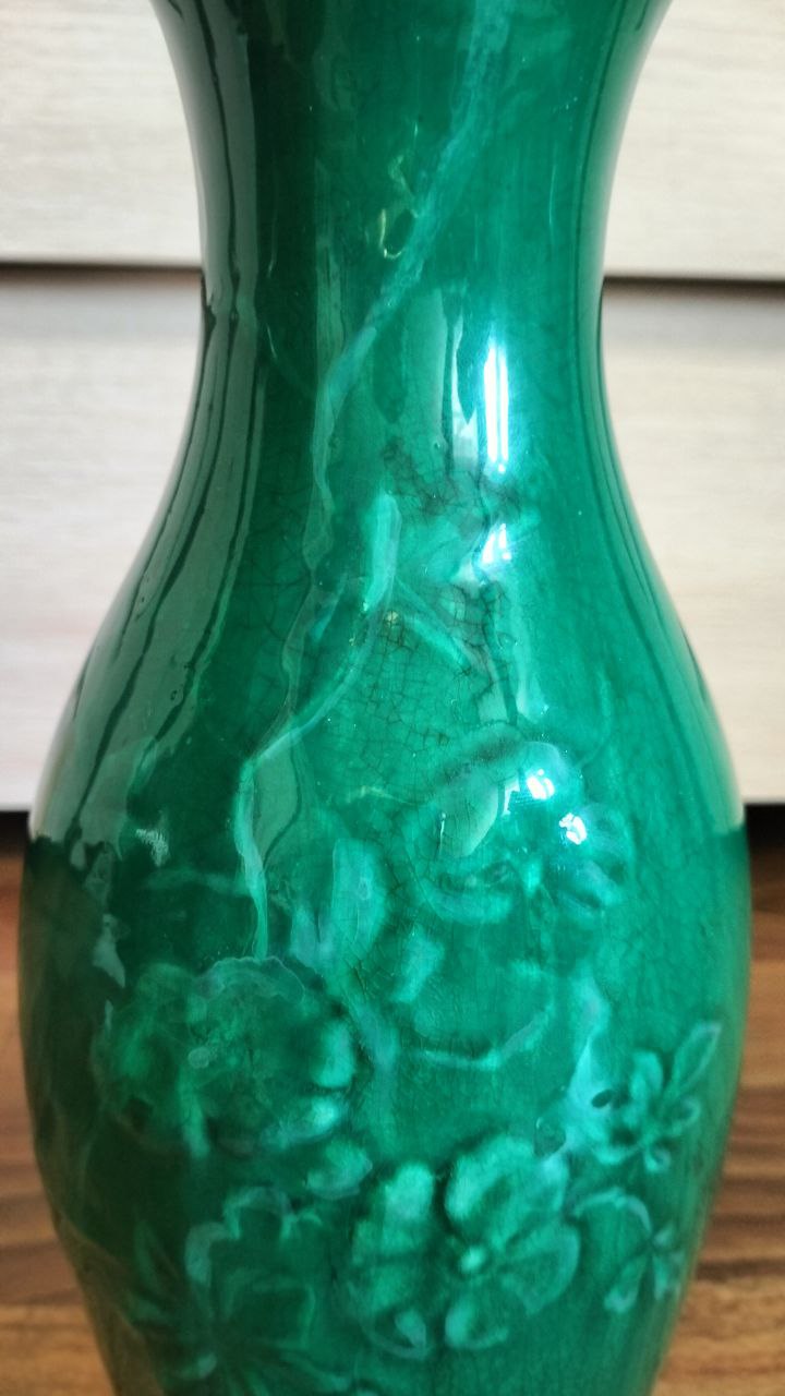 Ваза вернулась с реставрации. Попросил мастера оставить специально оригинальные трещинки на глазури, не реставрировать дно чтобы не выглядела современной. Клеймо опознали.