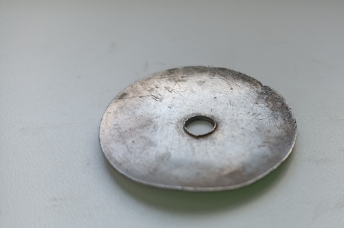 На гайке должны быть ушки или уступы . Здесь не видно следов . А вот следы от гайки на самой шайбе видны. Так , что это прижимная шайба от серебряного знака.