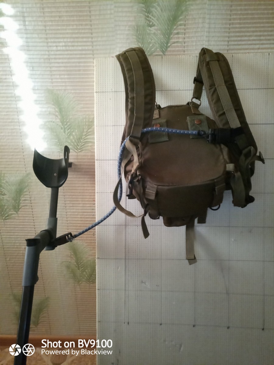 Я по простому,взял резиновый шнур с карабином ,купил в "Фикс прайс",привязал к лямке рюкзака. На приборе,эксплорер се,у меня,двумя пластиковыми кабельными хомутами,под блоком приспособил простое кольцо от ключей. Снимается легко .И рука не устает...