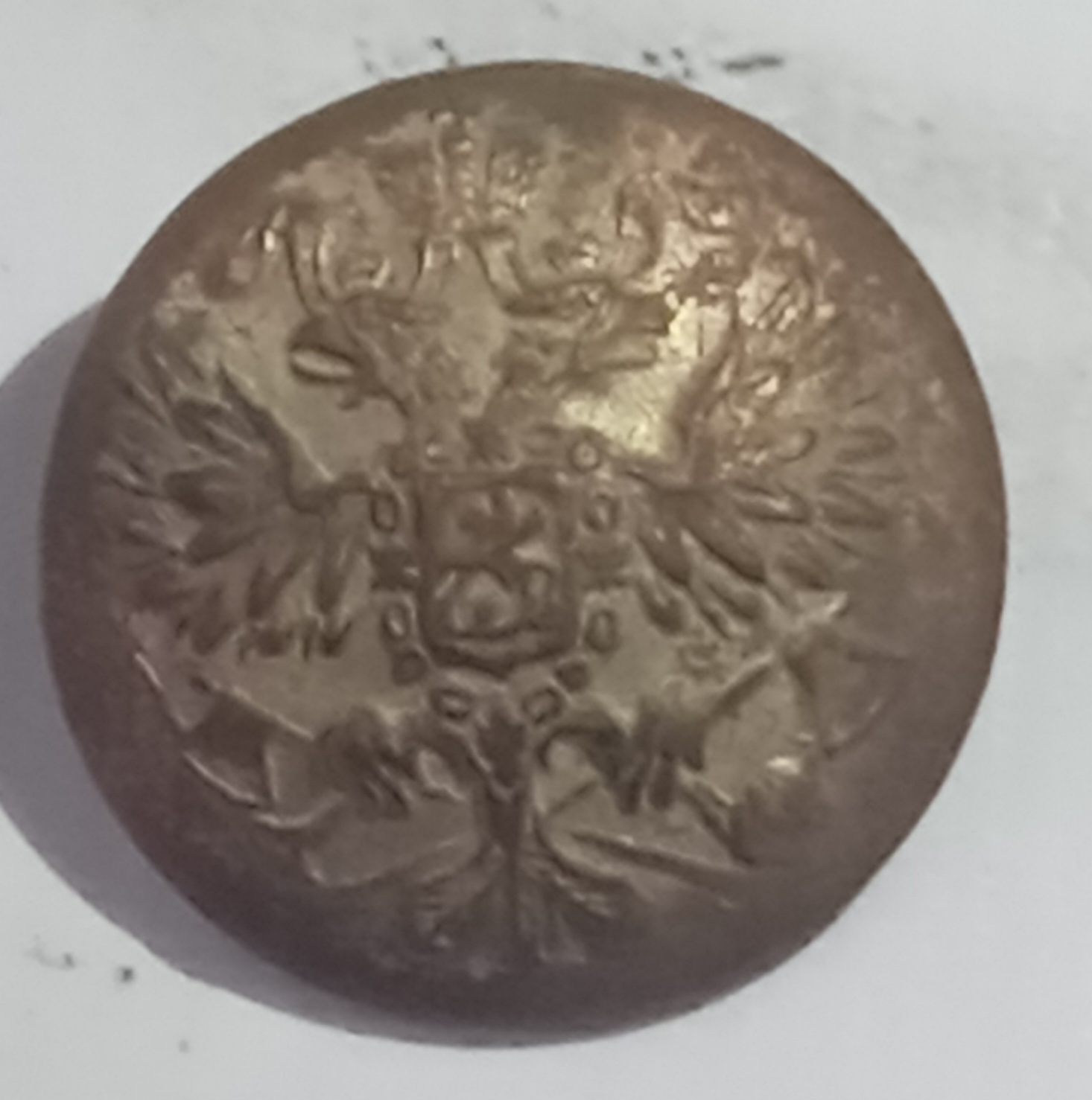 Добрый день.Офицерская пуговица РИА для инженерных войск (сапёры,железнодорожники,авиация).Пуговица не редкая,состояние не очень,цена будет не большой.С Уважением.