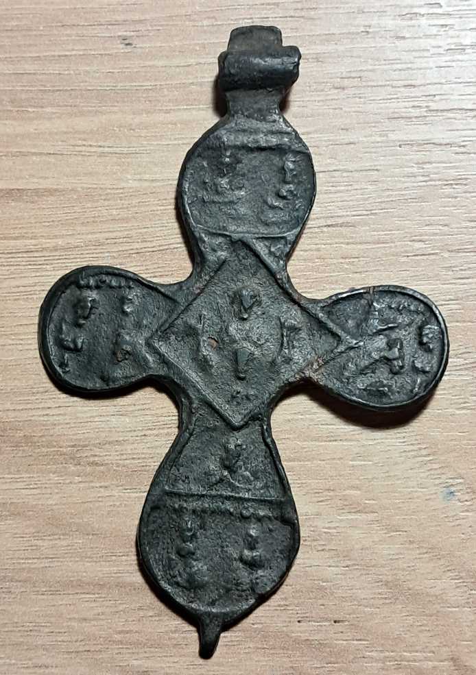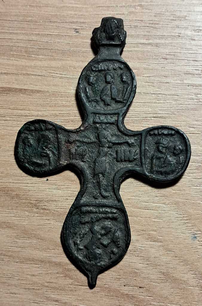 Доброго. Читайте правила выставления предмета. А так крест "пропеллер" с Никитой побивающий беса. 16 век. Сохран нормальный. 3т рублей.
