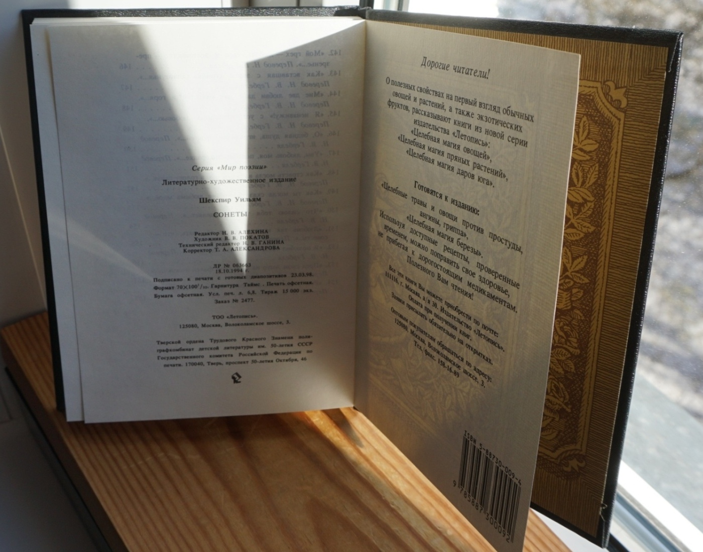 Предлагаю книгу Уильяма Шекспира "Сонеты" 1998 года : состояние на фото. Размеры 16,5 х 12,5 х 1 см, вес около 0,21 кг. Старт 50 руб., шаг от 10 руб., блиц 100 руб. Оплата на карту СберБанка. Качественную упаковку гарантирую. Отправка только почтой по РФ 150 руб., - заказная бандероль в пластике. Удачи! Вложенные эскизы изображений |