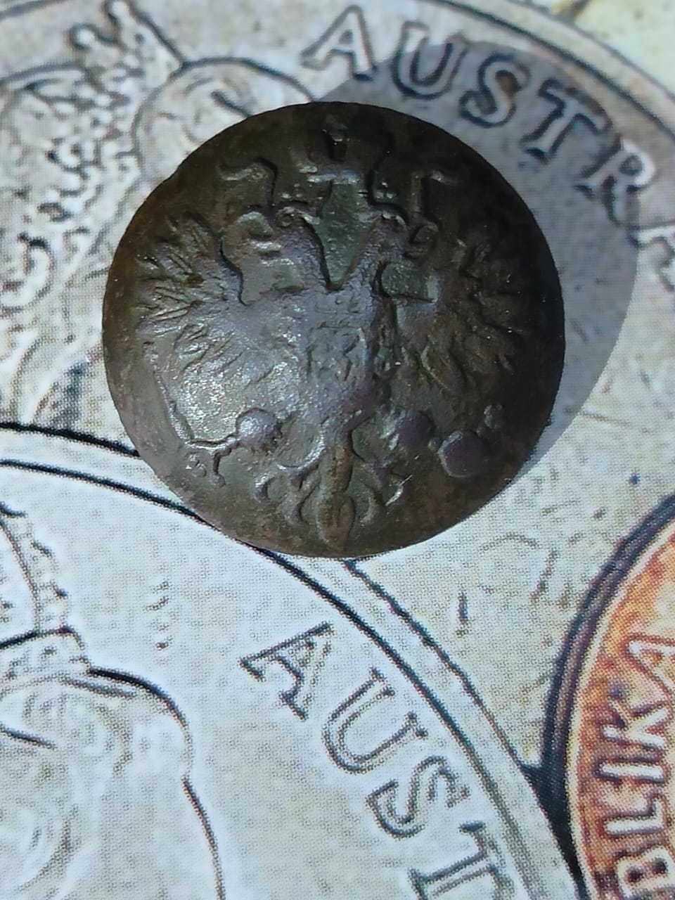 Друг нашёл пуговицу фото только такие. На пуговицы сзади нет надписей размер обычный. Орлянка с необычным хвостом подскажите пожалуйста,по разновидности. Заранее спасибо! Вложенные эскизы изображений -------------------- Не откладывай коп на завтра,если можешь ехать сегодня.