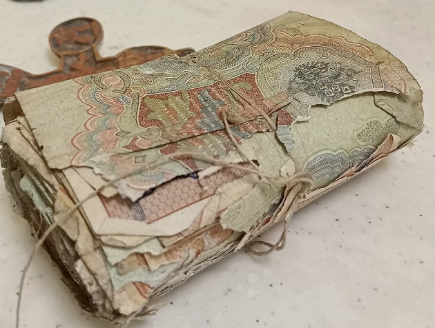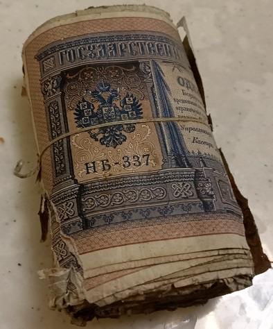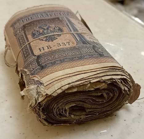 Добрый вечер уважаемые коллеги. Попался вот такой рулончик царских денежных знаков на чердаке. Стоит ли его разворачивать или возможно вот такой аутентичный вид более приемлем к продаже, а может он и вообще ничего не стоит. Подскажите как лучше. спасибо.