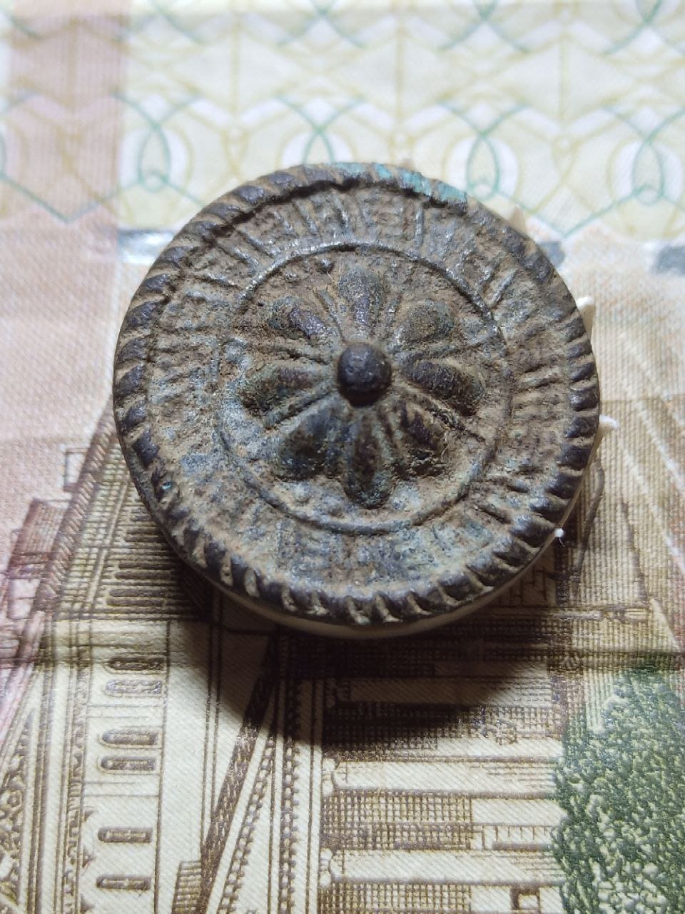 пуговка.олово или +- сплав.как у гирек подобных думаю на 17-18в