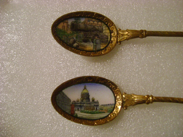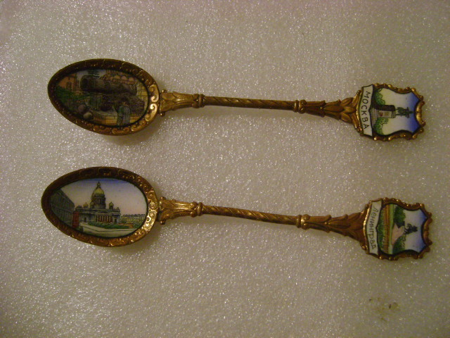 пара красивых ложек расписная эмаль с видами Москвы и Ленинграда на подарки к НГ!