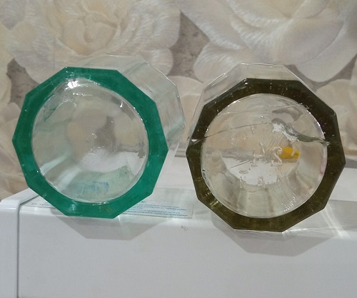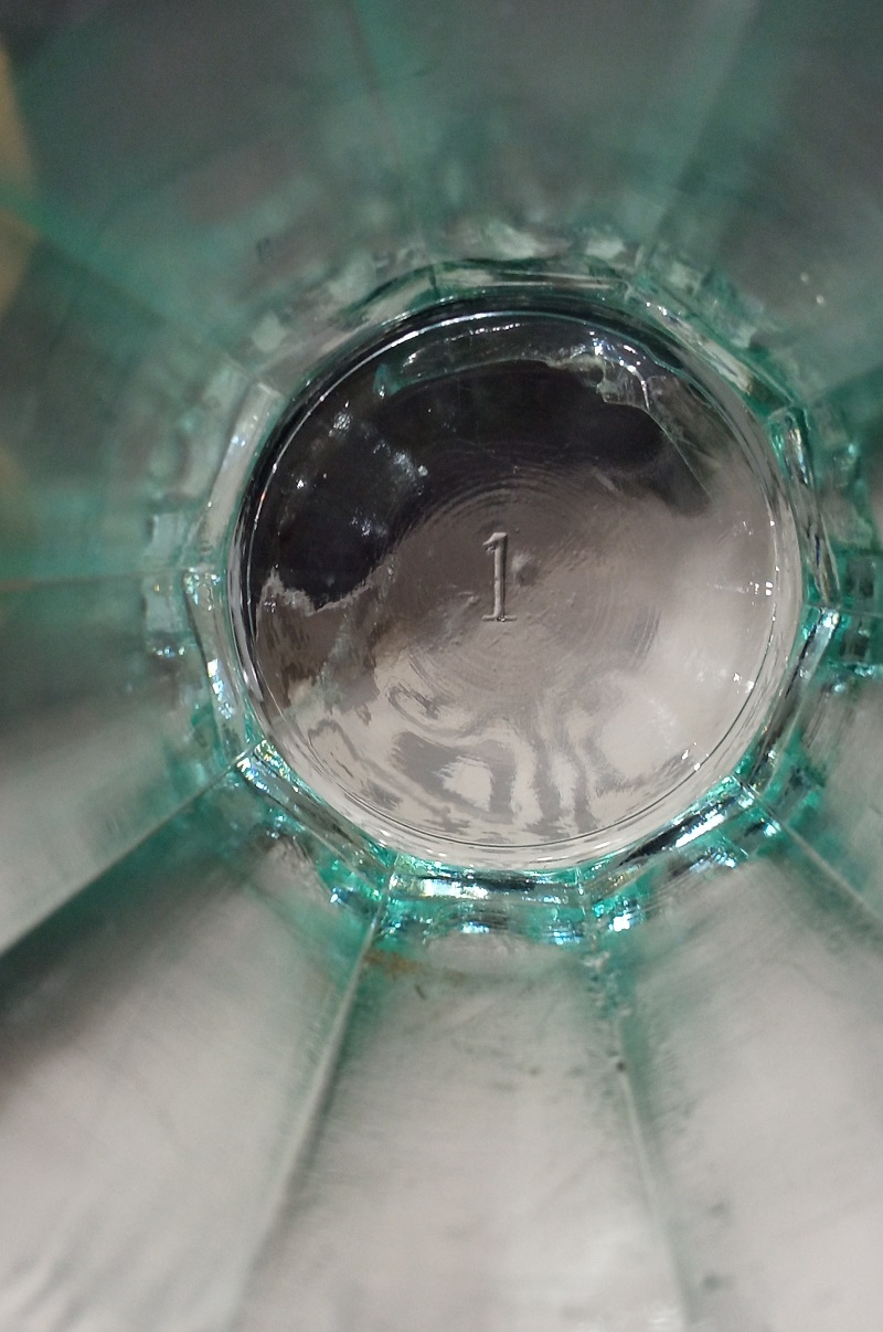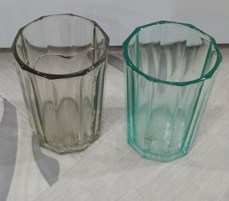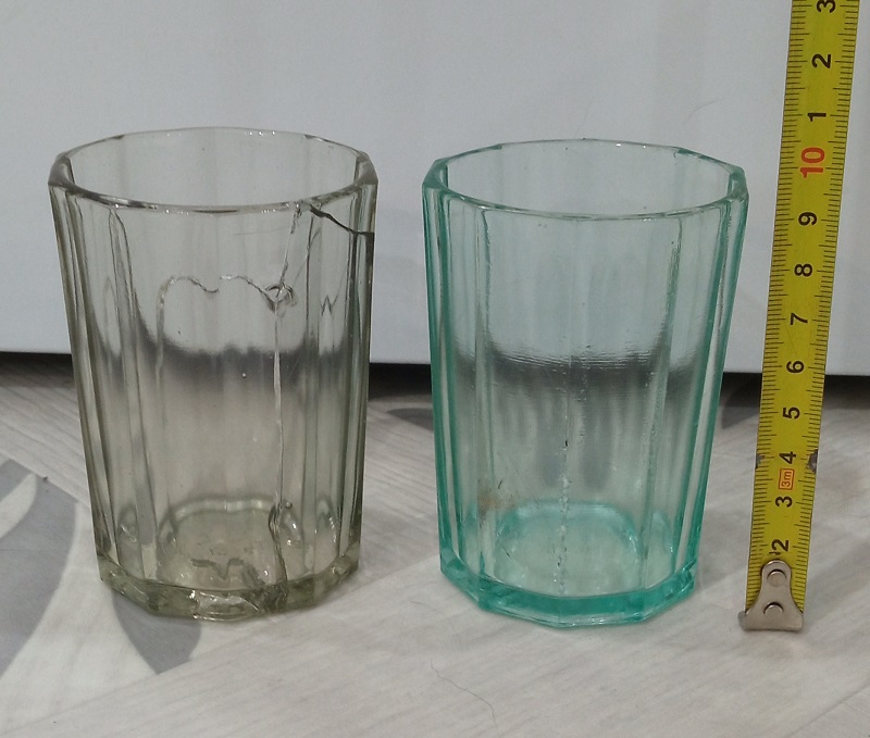 Зеленый стакан: высота 9,2 см., ширина верха 6,5 см, ширина низа 5,7 см., объём до верха 200 мл., 10 граней. Сколов и трещин нет. Клеймо цифра 1. Дымчатый стакан: высота 9,3 см., ширина верха 6,6 см, ширина низа 5,6 см., объём до верха 200 мл., 10 граней. Трещина от верха до дна. Клеймо на дне - Красный 24 Май. Спасибо заранее за ответы! Вложенные эскизы изображений -------------------- ранее ник был Алексеевич