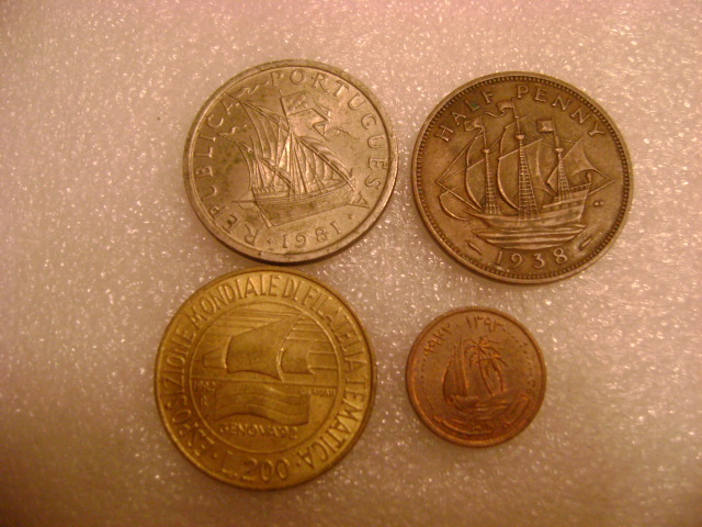 лот монет с парусниками: Канада,Катар,Италия и Португалия