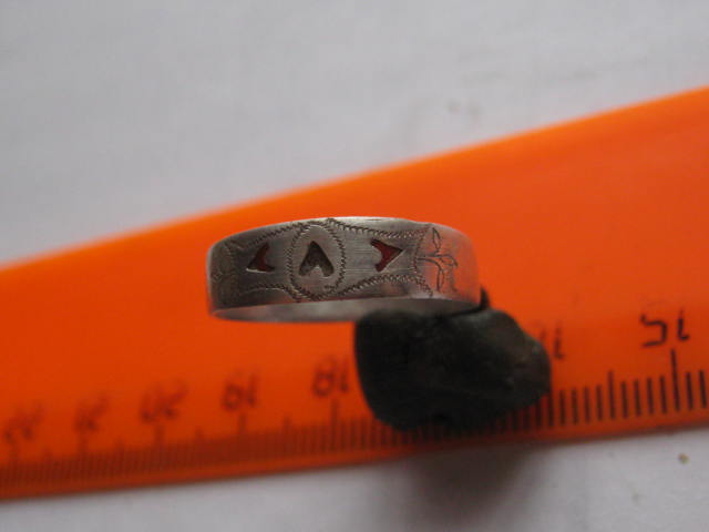 Здравствуйте . Серебряный перстенек , возможно этнический . Посмотрите - вставки пластмасса ? Были очень популярны в самом конце 19-го - начале 20-го вв , может быть и ранние Советы