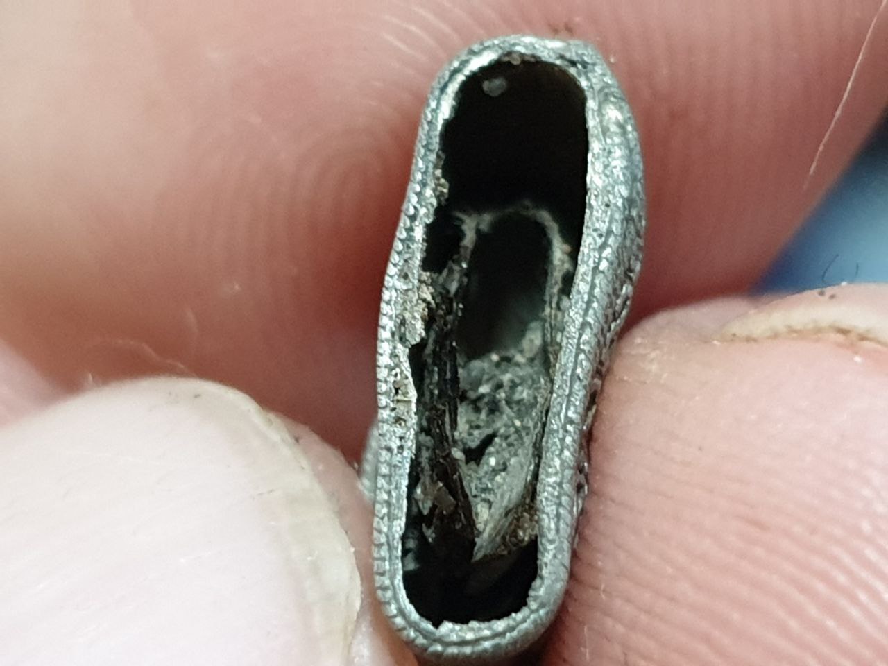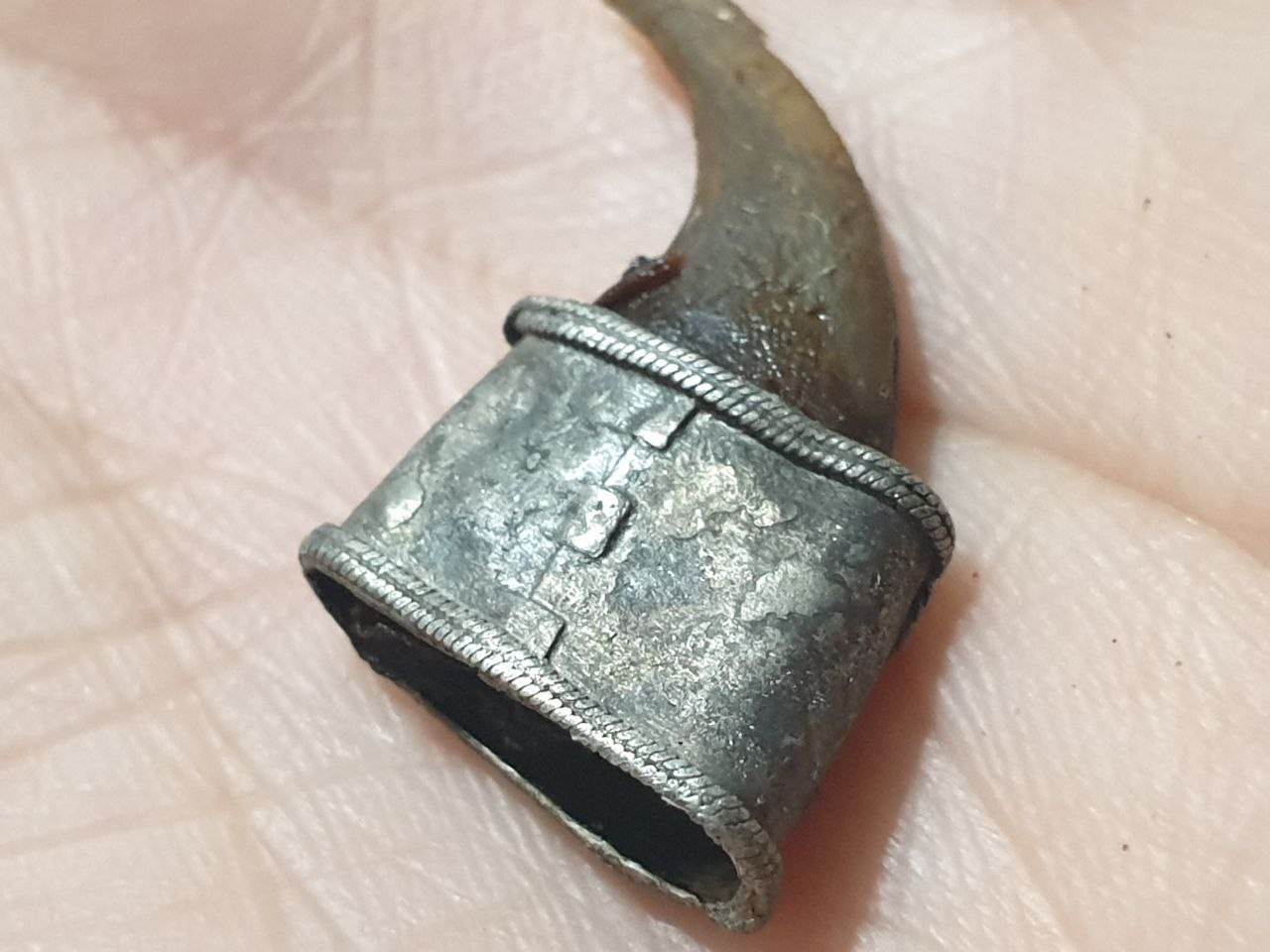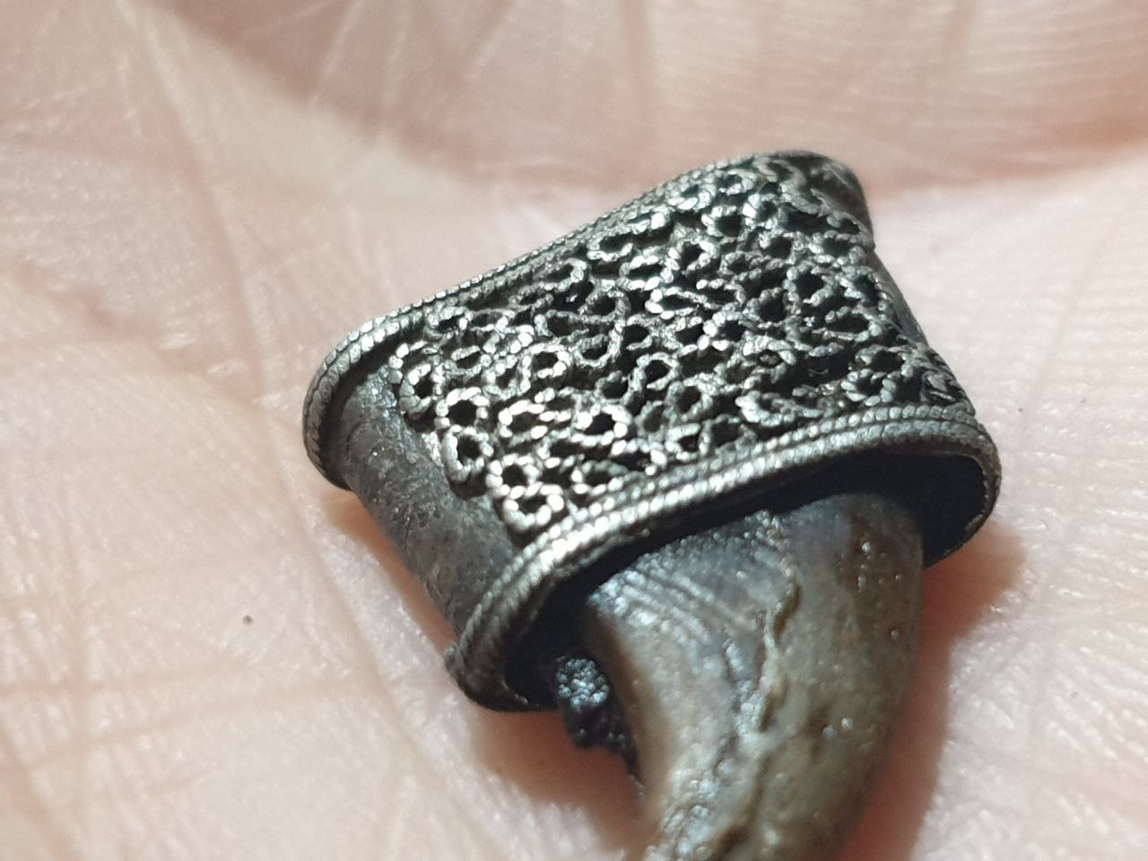 Имхо есть. Амулет. Волк? Медведь? У охотников надо спрашивать "Крышка" сверху была с ушком, отвалимши, осталась у хозяина на шее. По периоду, фз, я бы предположил в районе 16 века. -------------------- Прав тот, у кого друг - директор.