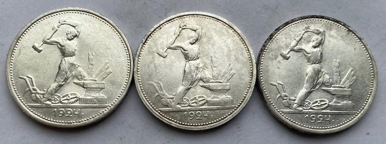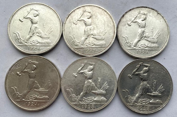 Предложу лот - 6 полтинников 1924(тр)1925 г лот № 1 . Серебро. Комплекс.