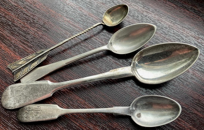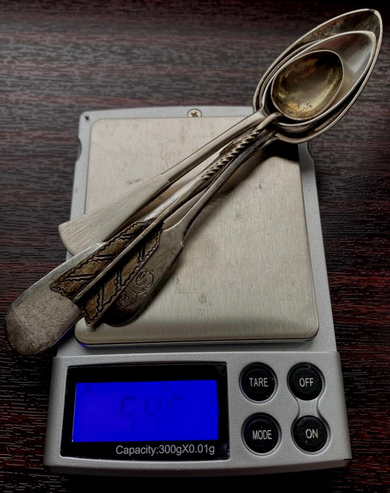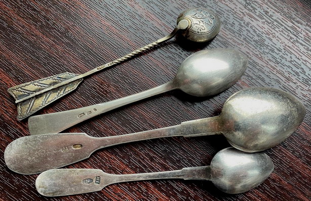 Предложу лот - Четыре чайные ложечки, РИ. Серебро 84, 800 проба. Вес- 54,5 грамм.