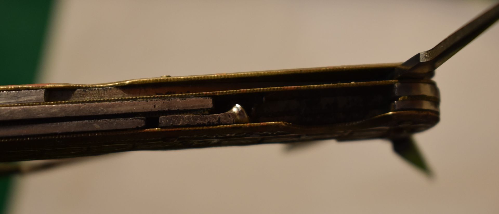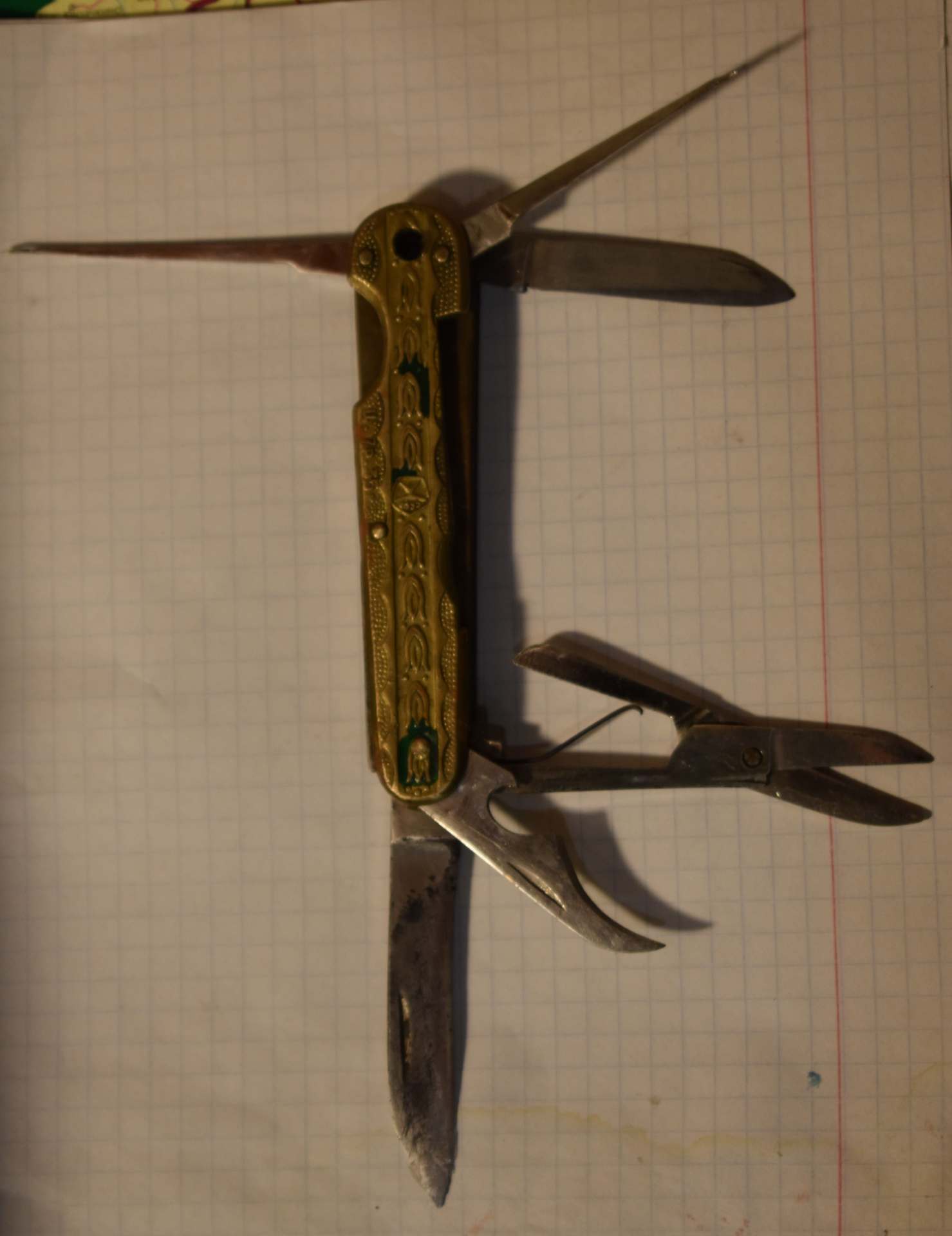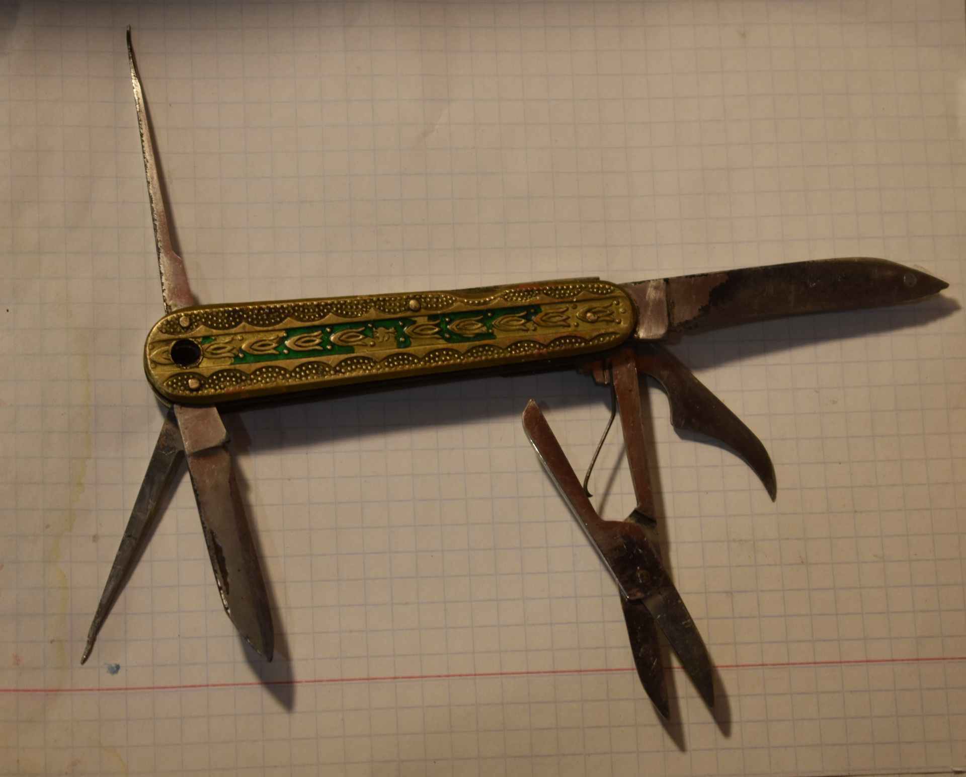 Приветствую, уважаемые форумчане! Выставляю на аук складной нож из СССР, знак качества, в новом состоянии стоил 7р.50к.Недостаток- сломан штопор( указал на фото)
