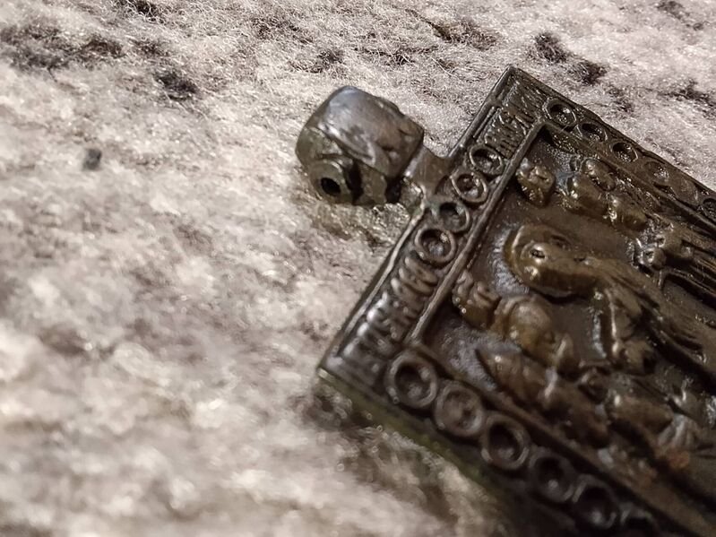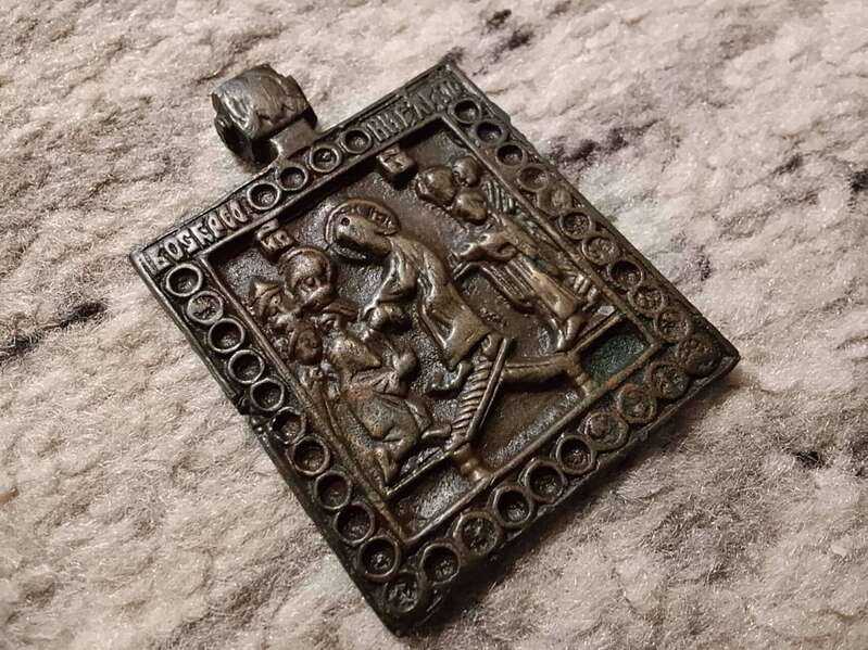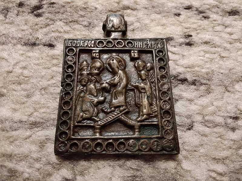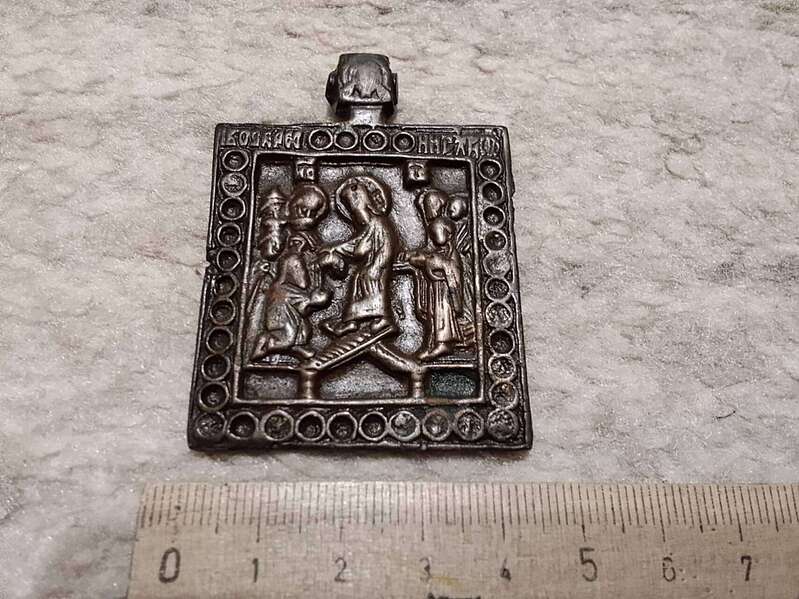 - Размер 4,5см × 5см, период примерно Екатерины 2. - В навершии Спас Нерукотворный, отверстие под шнурочек. - На правой стороне с обратки стоит клеймо мастерской или мастера. - По преданию, для владельца иконка служит как оберег. - Сюжет вызволение праведников из ада, спасения уворованных в него ,, от тлена в адской бездне,, Одну руку он протягивает Адаму, с другой стороны с надеждой вглядывается в него Ева. - В живую смотрится очень достойно и красиво. - Из домашней коллекции. Отдам на фотосессию 8000 руб + дорога по тарифу почты на карту сбербанка. После отправки предоставлю фото чека сколько вышла доставка. Сообщение отредактировано Авейро: Nov 25 2025, 19:28 Вложенные эскизы изображений -------------------- Будьте добры друг к другу.