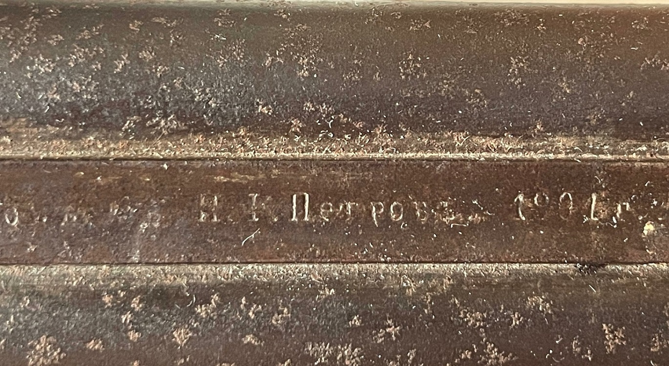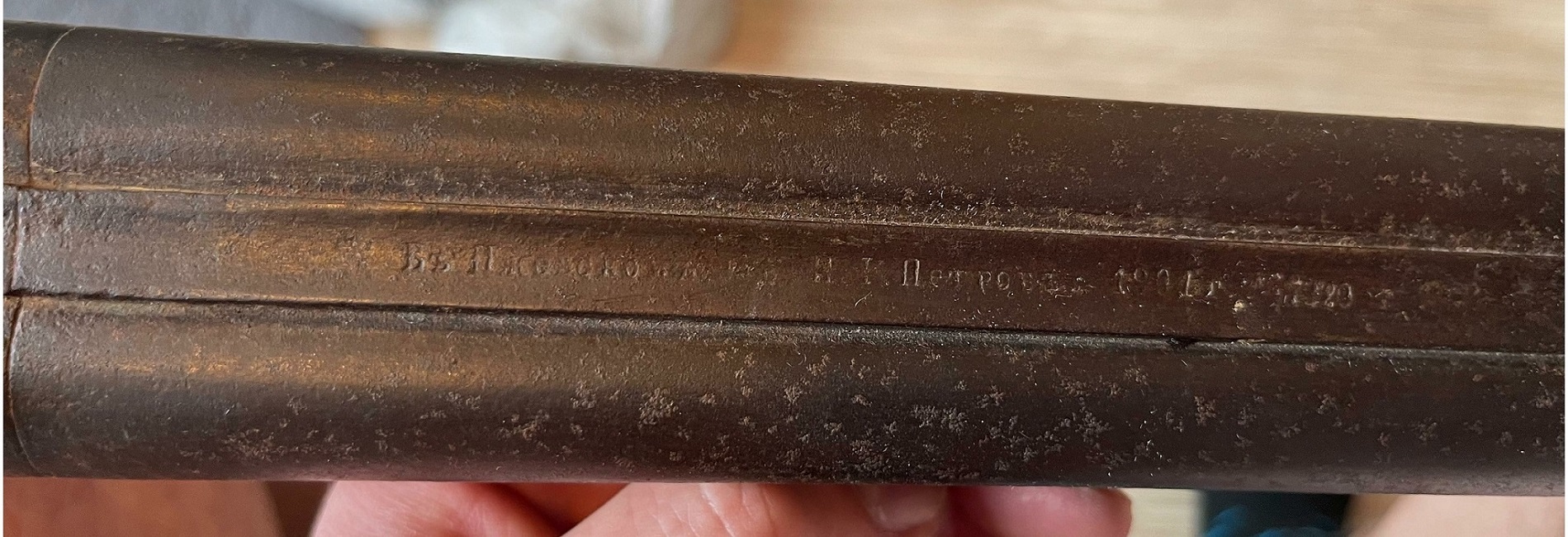 Простите, а что ж тут атрибутировать? Все ж написано - 1901 год, Петров))) Двустволка капсульная... Сохран приличный, хотя ружье из самых простых, без украшательства, исключительно для охоты, утку да зайца стрелять))) Еще бы стволы изнутри сфотографировать с подсветкой на предмет гладкости или коррозии... Ну и шомпол досадно утрачен...