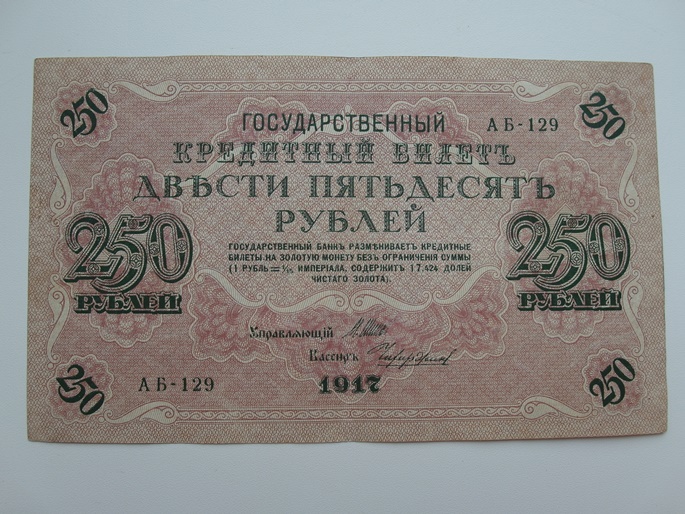 P.S. Всего в наличии есть 10 штук банкнот 250 рублей 1917 года с разными кассирами и управляющими. -------------------- Мой старый ник R-R-R погиб смертью храбрых
