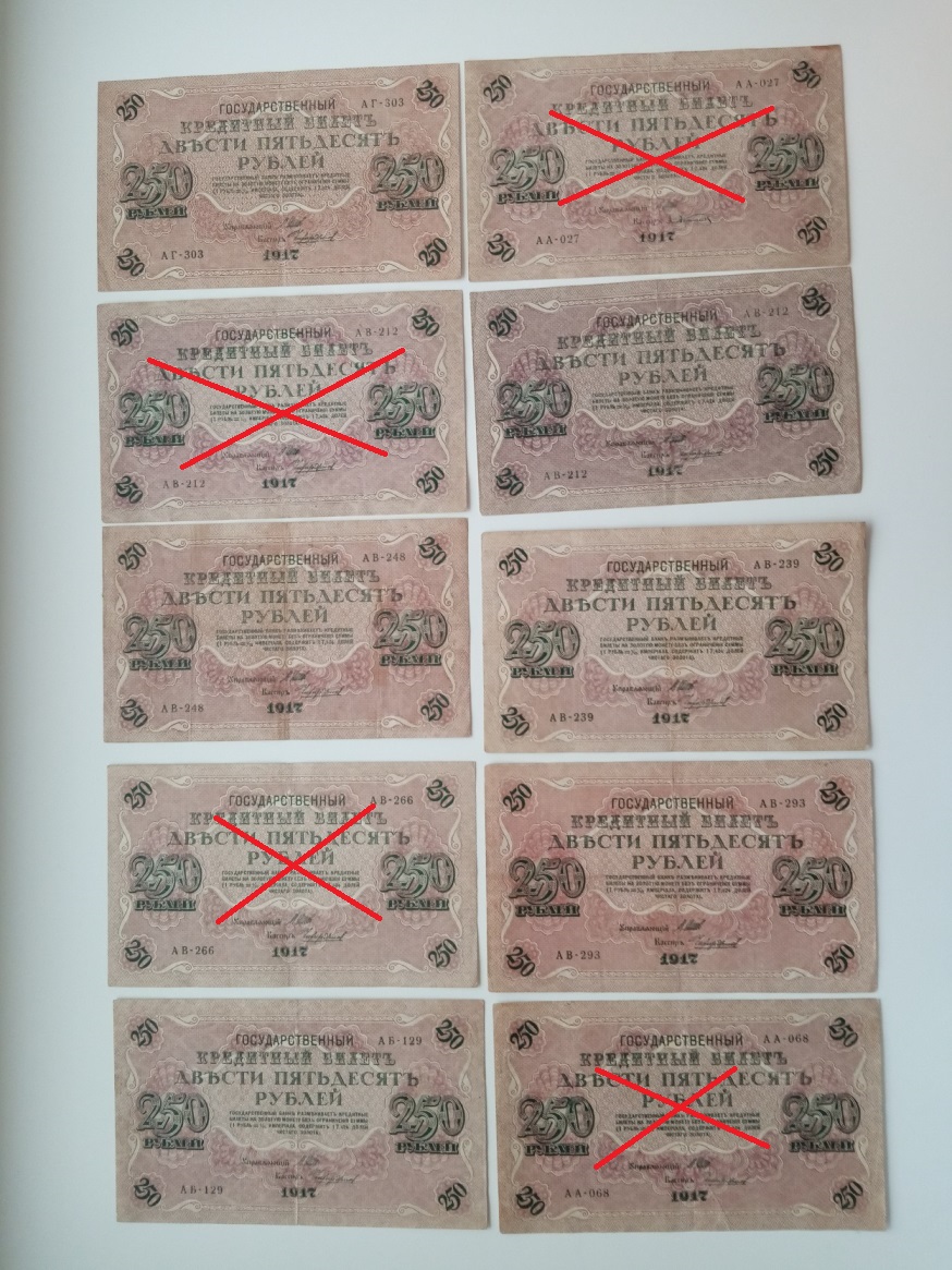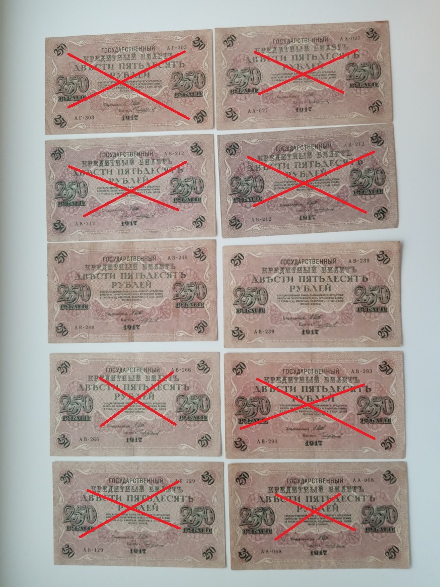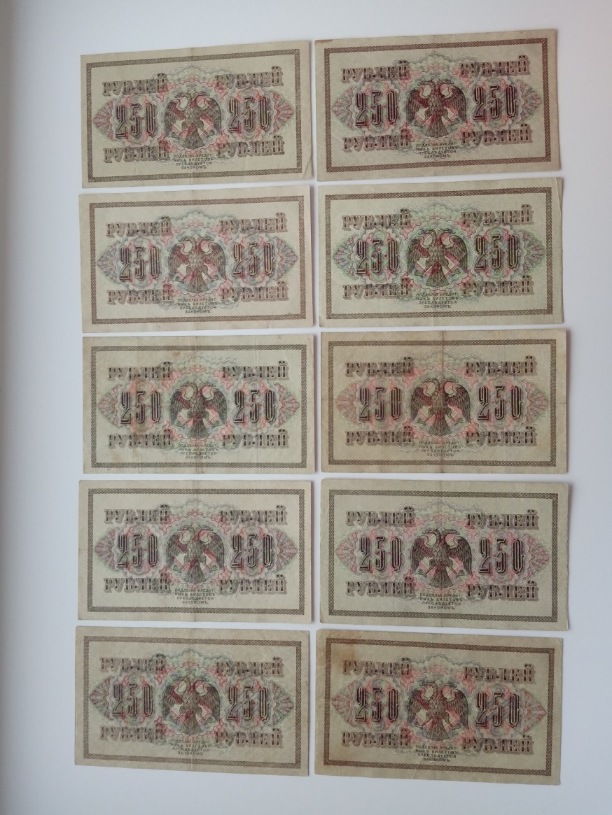 P.S. Всего в наличии есть 10 штук банкнот 250 рублей 1917 года с разными кассирами и управляющими. Сообщение отредактировано PiterMan: Dec 3 2025, 13:40 -------------------- Мой старый ник R-R-R погиб смертью храбрых