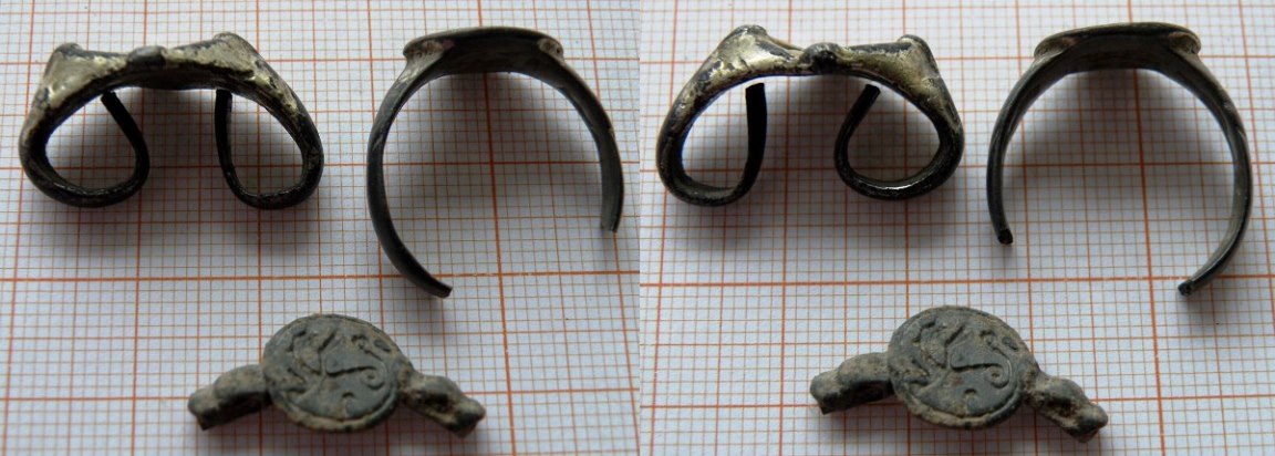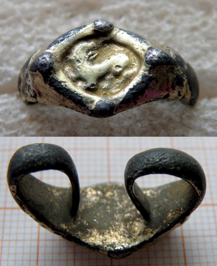 Здравствуйте! Предлагаю вашему вниманию два серебряных перстня, с остатками позолоты. И интересный щиток с со зверем влево и остатками шинки стилизованной под змеиные головы.