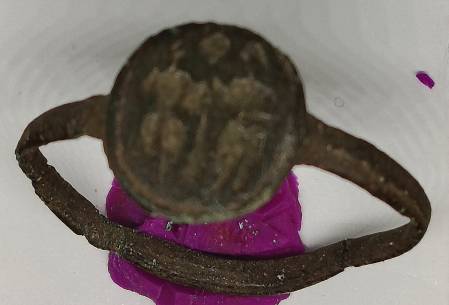 Два перстня.1. Адам и Ева у ихнего древа. 16 век. 2. Гладкощитковый, белая бронза, 14 век.