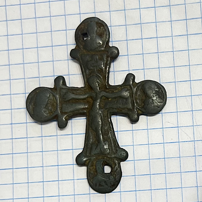 Накладной крест, переливок с энколпиона 12-13 века, степень редкости R9.