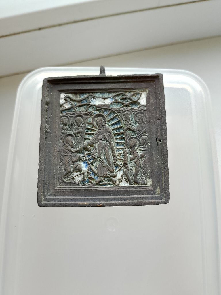 Икона Воскресение Христово. Не чищена, с остатками эмали.Размер 5,2х5,5 см