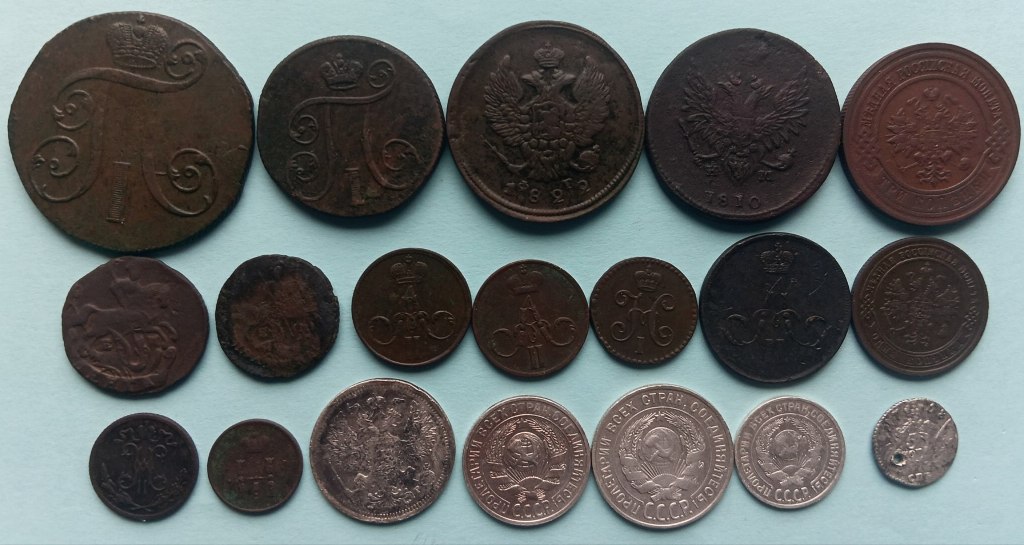Предмет: 100 не чищенных подуставших монет РИ разного номинала и периода РИ и 19 очищенных в том числе серебряные РИ и Советы, все на фото. Отдам под залог на профизучение или фотосессию.