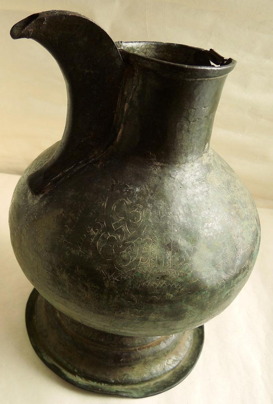 Здравствуйте. Коллеги, подскажите пожалуйста, будет ли интерес на аукционе к данному медному кувшину, расписан узорами, находка с чердака. Размеры: высота 30 см., диаметр дна 20 см., диаметр горловины 8 см. не хватает ручки. Вес: 1 кг. 850 гр.