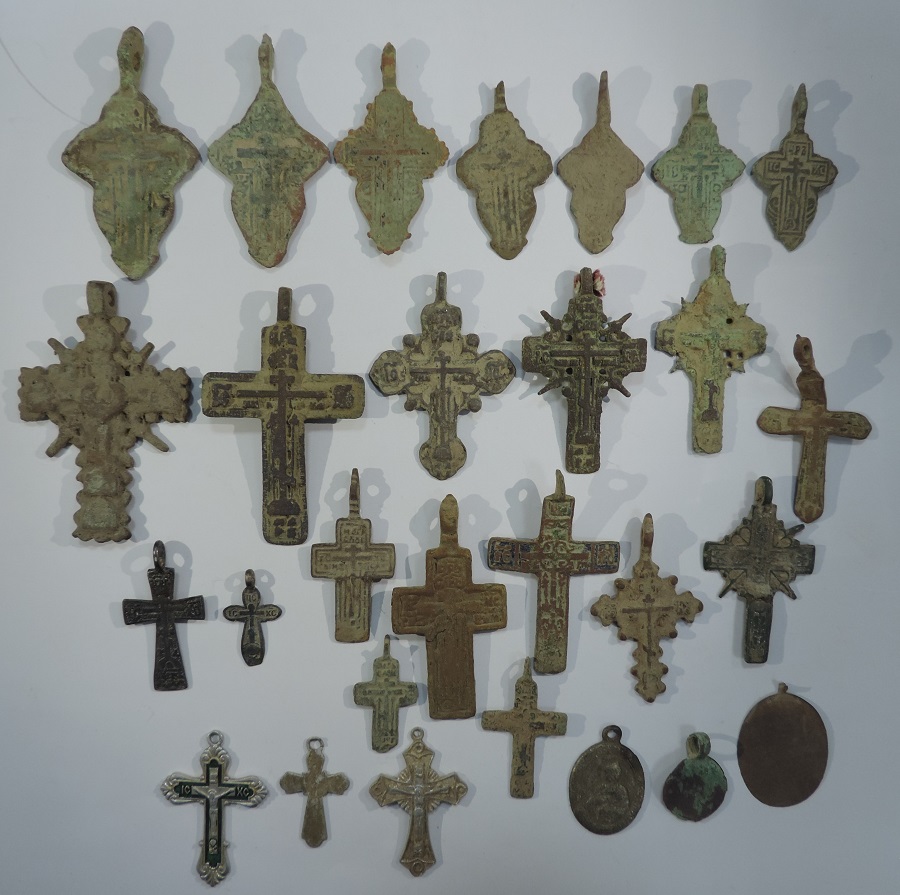 Отдам для изучения 25 крестиков разного периода и три иконки (не чищенные), Среди крестиков есть два серебряных 84 пробы, предложившему наивысшую стоимость залога. Отправлю еще бонусом ломаных для ремонта и практики.