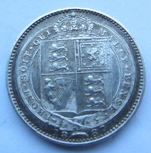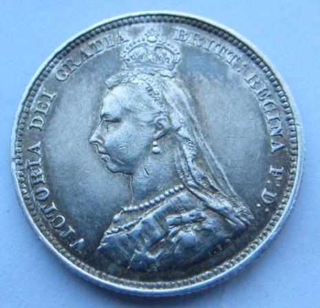 Великобритания 1 шиллинг 1887г. Серебро. Некопаная. Патина, под патиной блеск.