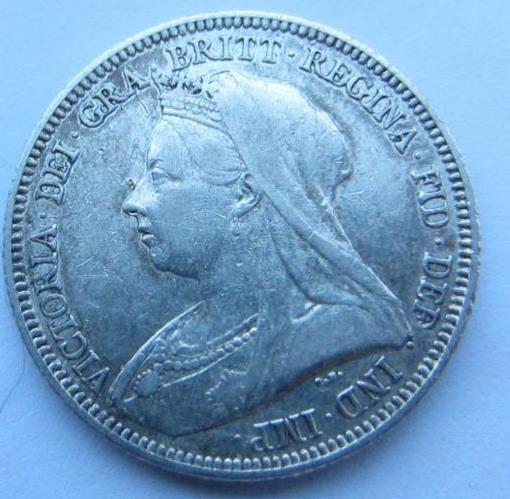 Великобритания 1 шиллинг 1893г. Серебро. Некопаная. Патина.
