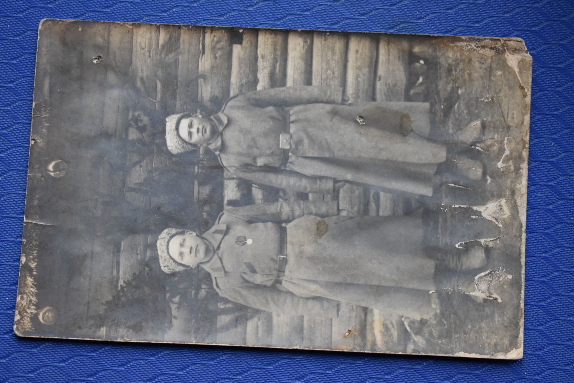 Фото времен ПМВ, солдат награжден Георгиевской медалью за храбрость 4 степени и представлен к медали з ст.(ленточка на отвороте шинели).Открыточный вариант-8.9 х13.5 см