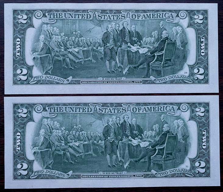 Предложу лот - 2 купюры по 2 доллара США 2003 А Номера подряд. Хруст-не сгибались из пачки. Состояние на фото. Любые фото по просьбе вышлю в личку.